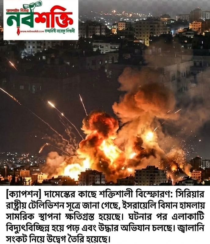 মধ্যপ্রাচ্যের পরিস্থিতি আবারও উত্তপ্ত হয়ে উঠেছে। সিরিয়ার রাজধানী দামেস্কের কাছাকাছি একাধিক সামরিক লক্ষ্যবস্তুতে গত রাতে বড় ধরণের বিমান হামলা চালিয়েছে ইসরায়েল। এই হামলার ফলে ওই অঞ্চলে নতুন করে বড় ধরণের সংঘাতের আশঙ্কা দেখা দিয়েছে, যা বৈশ্বিক ভূ-রাজনীতি এবং জ্বালানি বাজারে অস্থিরতা তৈরি করতে পারে।