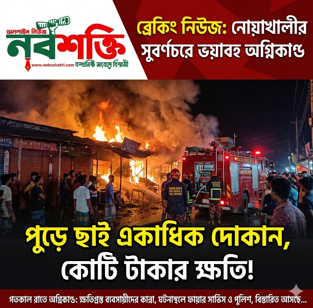 সুবর্ণচরে গভীর রাতে ভয়াবহ অগ্নিকাণ্ড: পুড়ে ছাই কয়েক কোটি টাকার মালামাল